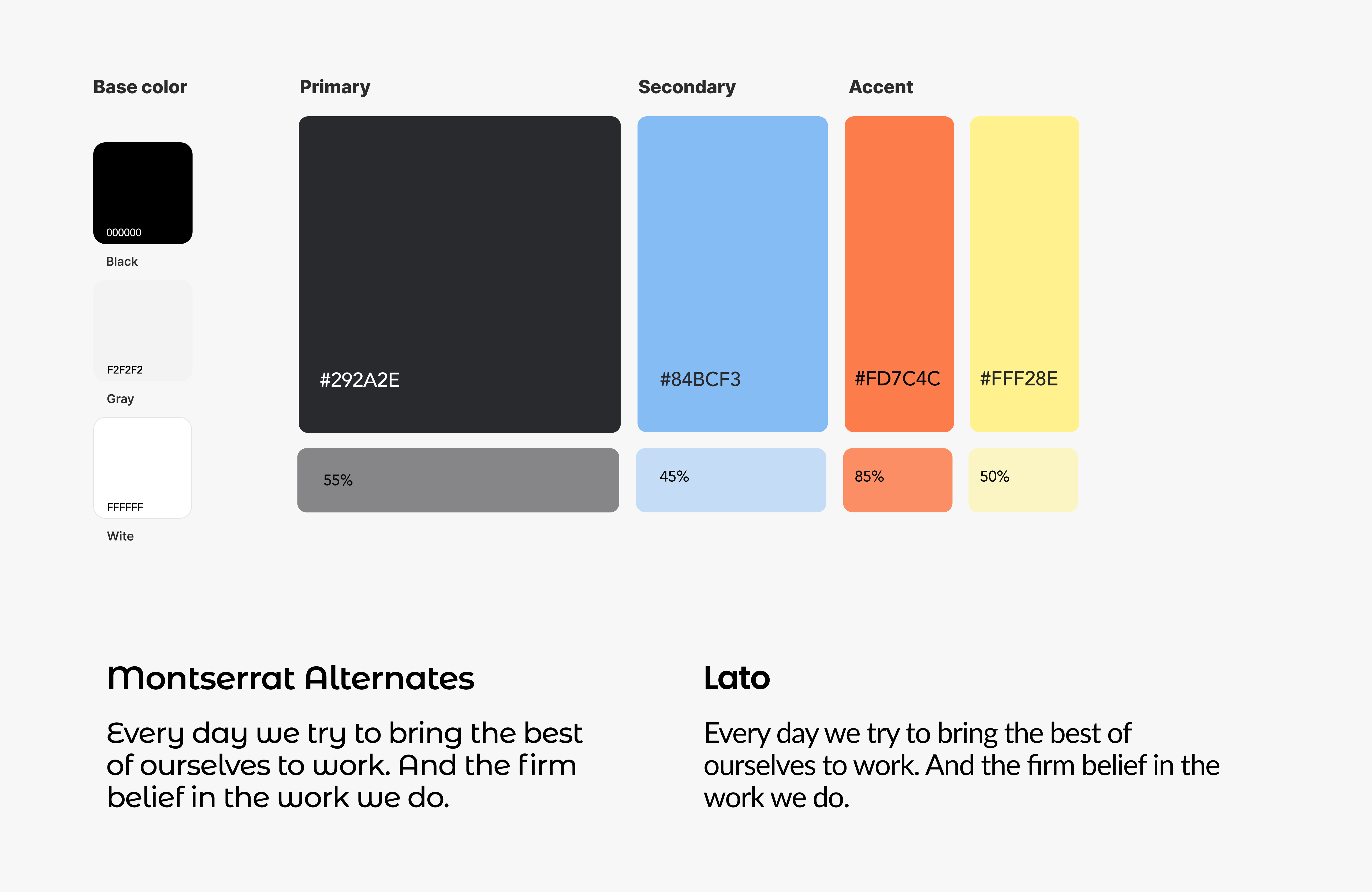 The logo conveys this idea. It consists of the name of the company where M serves as water, and the dash as a bridge.The color scheme where blue is the main color gives a feeling of energy and youth. Font pair Montserrat and Lotto bring a feeling of a bit rebellious mood.